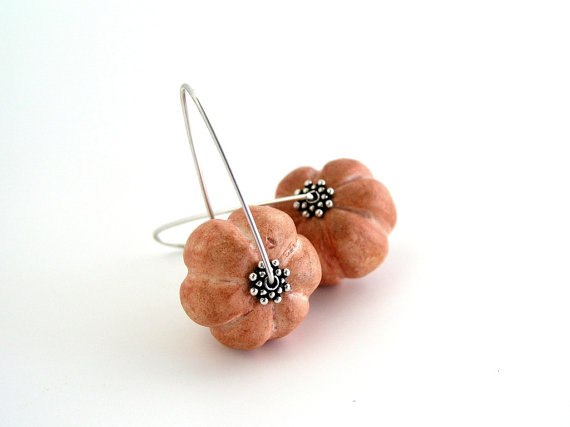 - Clay pumpkin earrings, air dry clay, rust orange, sterling silver, Halloween Thanksgiving jewelry, sculptured earrings, autumn, rustic