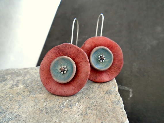 - Red blue turquoise clay anemone polymer earrings eco friendly rustic shabby chic anemone earrings sterling silver, poppy, organic, flower