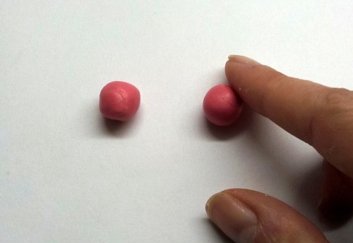 Form two small balls of fuchsia polymer clay.